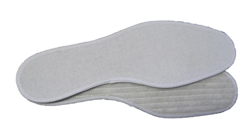 Unsere 3-lagige Einlegesohle Petra ist eine besonders komfortable Sohle die in einem sehr aufwendigen Verfahren aus weicher Steppwatine, Zellulose und 100 % Frottee kaschiert wird. Die Oberseite aus Frottee sorgt für optimalen Tragekomfort und zusätzlichen Nässeschutz. Die Zwischenschicht aus Zellulose nimmt die Feuchtigkeit auf und hält den Fuß trocken. Die untere Schicht aus Steppwatine ist besonders stoßdämpfend und verhindert das Verrutschen im Schuh.